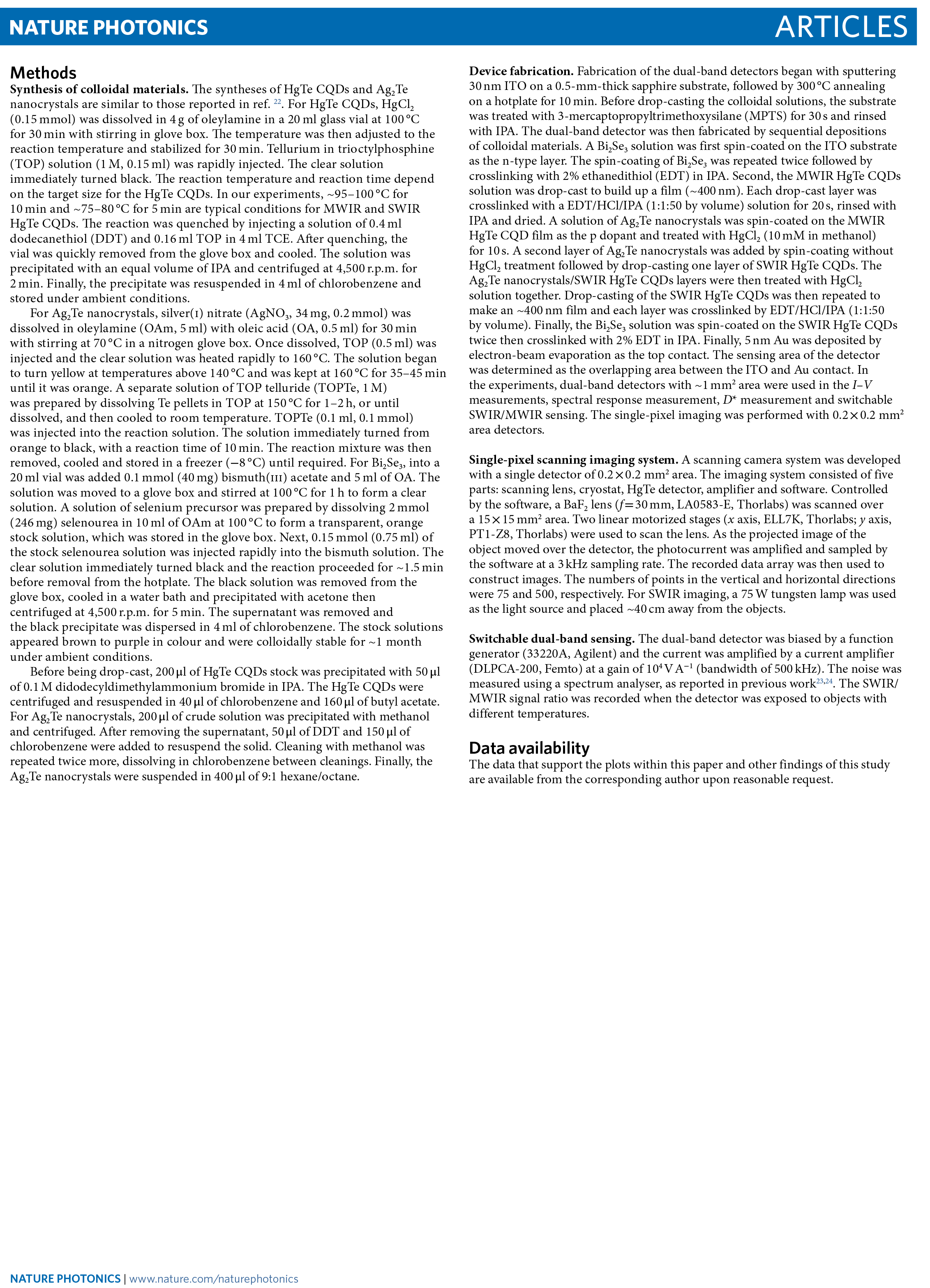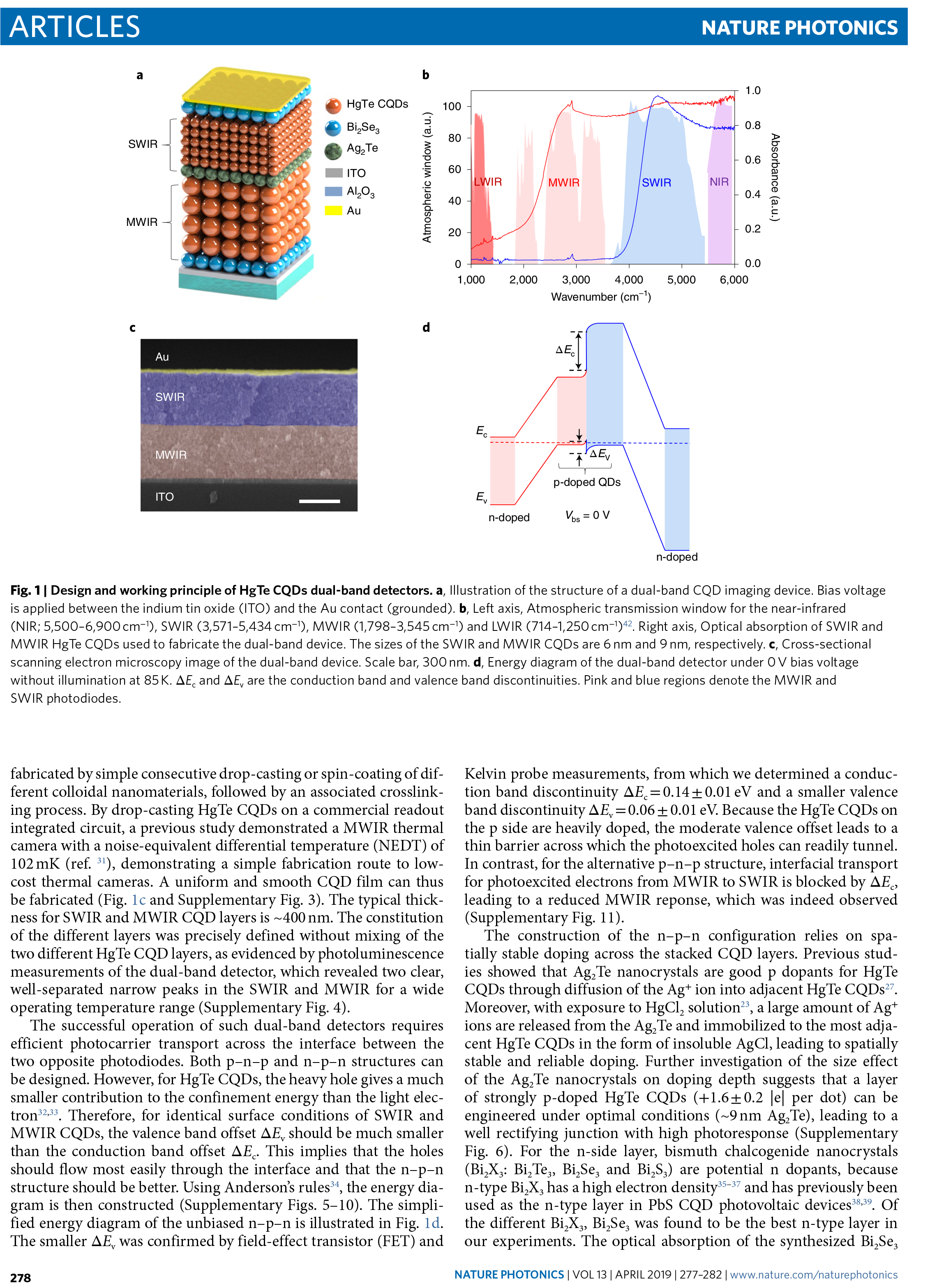 Mercury telluride colloidal quantum-dot focal plane array with planar p-n junctions enabled by in situ electric field–activated doping