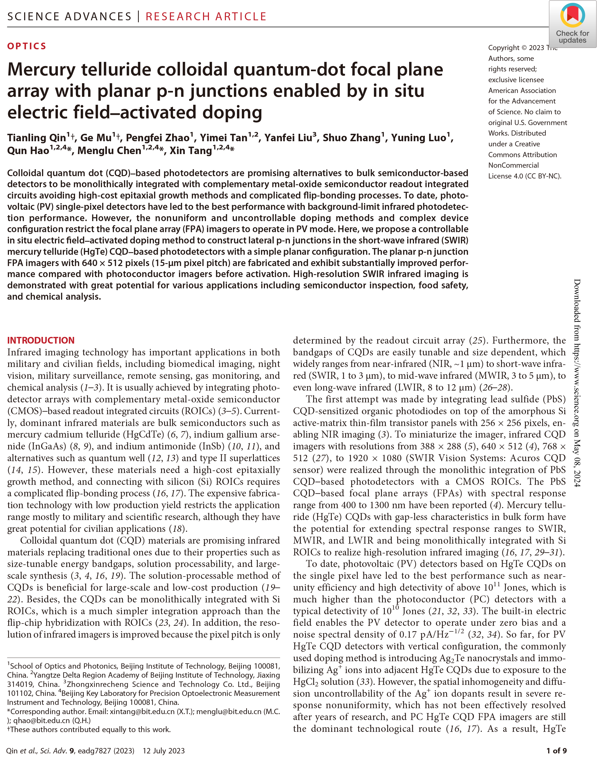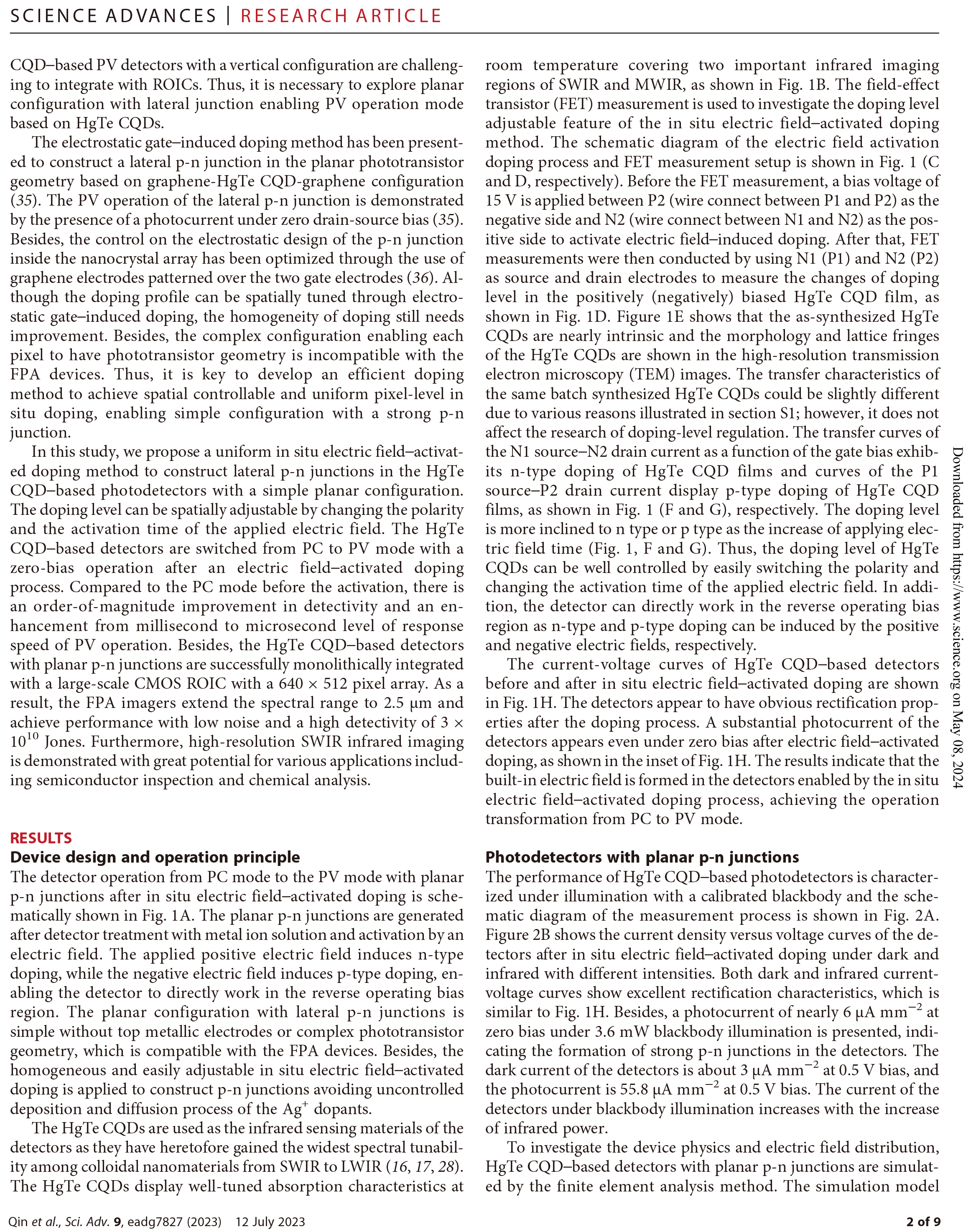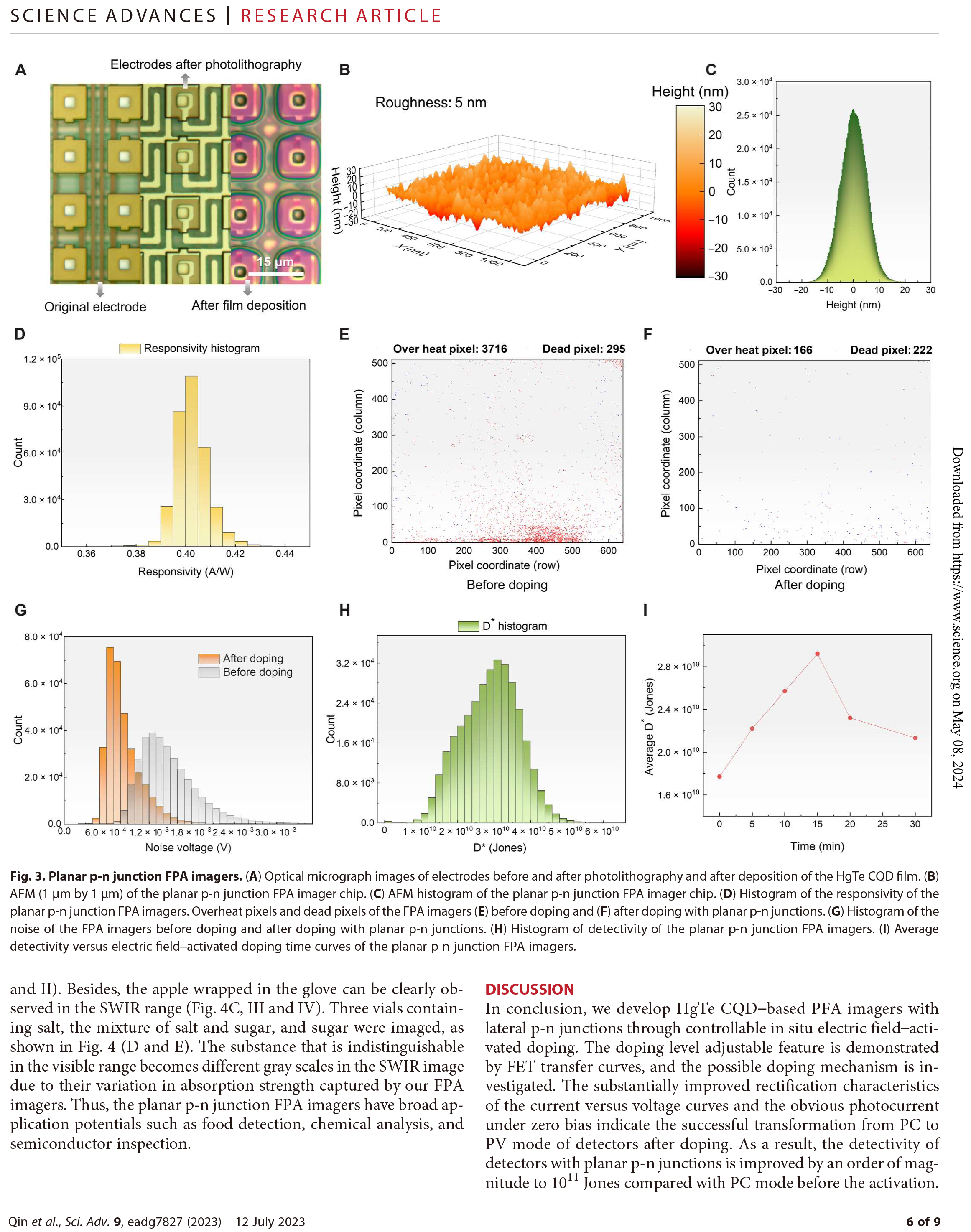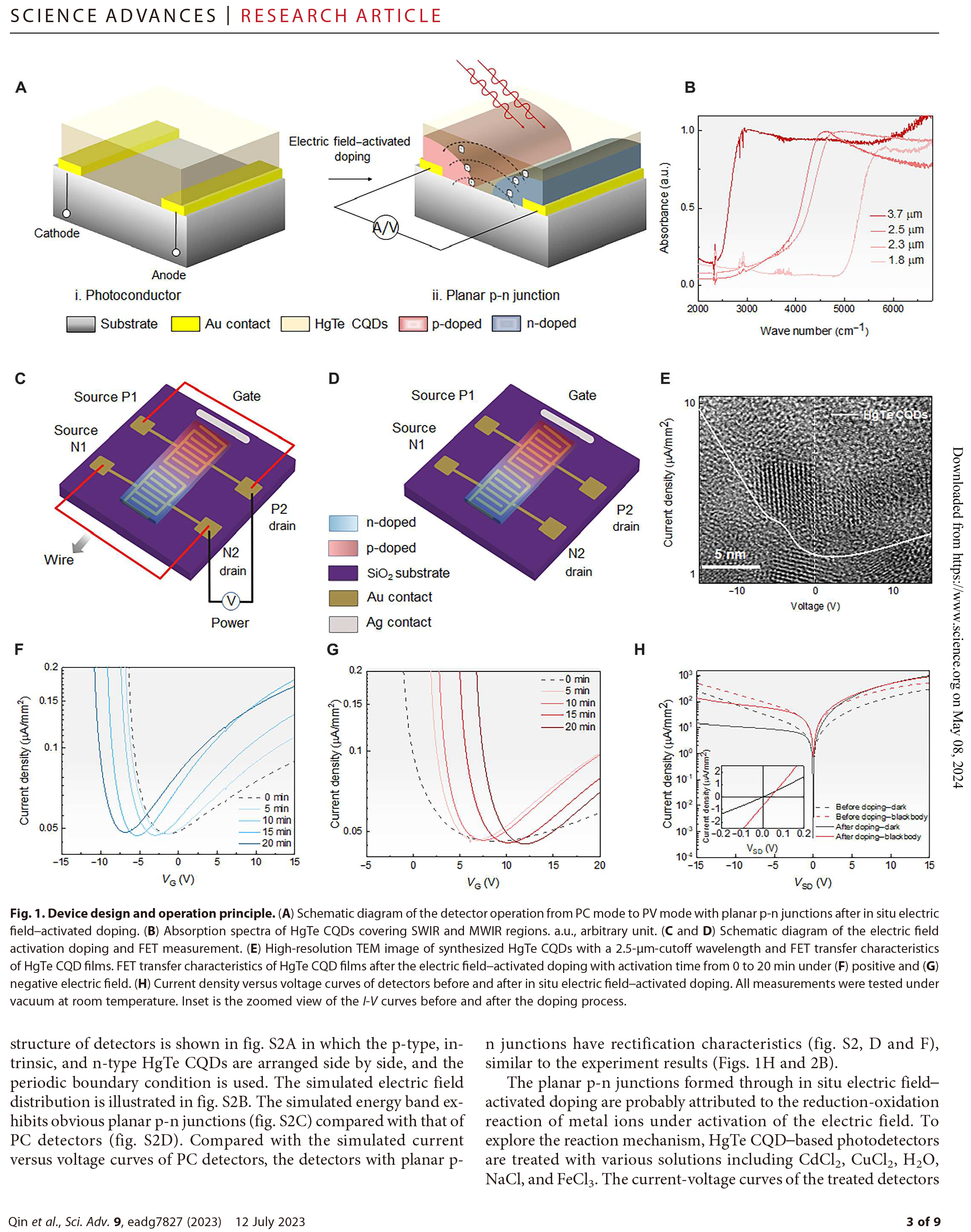Mercury telluride colloidal quantum-dot focal plane array with planar p-n junctions enabled by in situ electric field–activated doping
