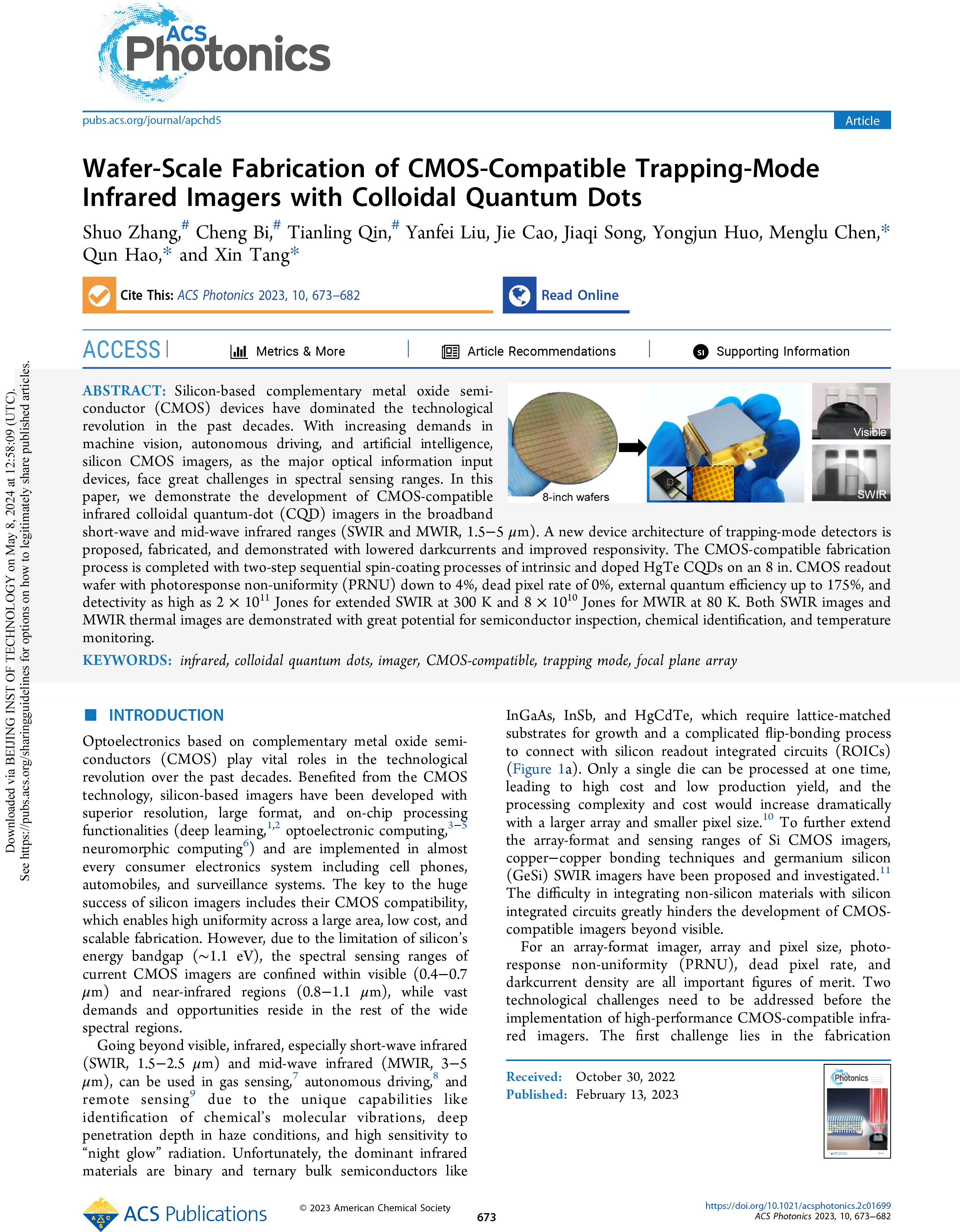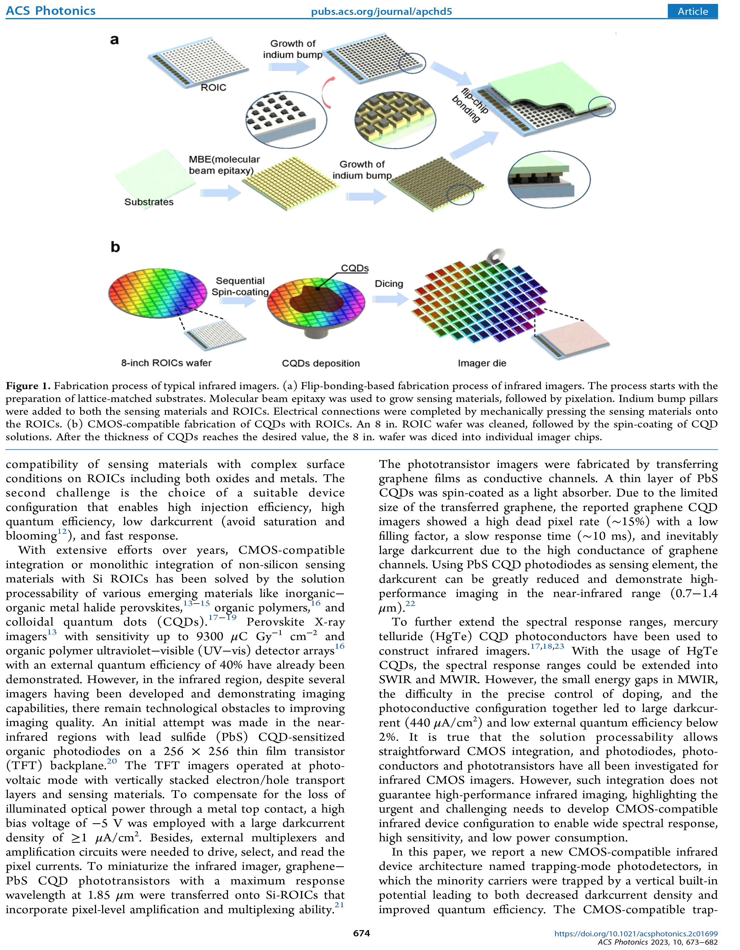 Wafer-Scale Fabrication of CMOS-Compatible Trapping-Mode Infrared Imagers with Colloidal Quantum Dots