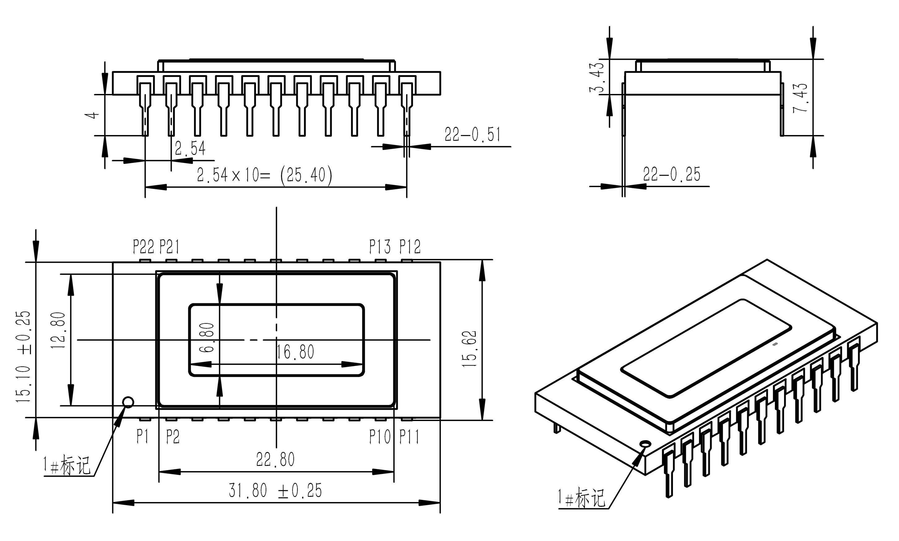 1024×1 CQDs 线阵探测器主要组成部分包括高效能CQDs 感光层、读出电路(ROIC)、以及其封装。它采用了陶瓷类型的封装技术。此探测器运用了尖端的红外量子点薄膜作为感光材料,能够提供高性价比短波探测器方案。该款探测器采用陶瓷封装形式,充常压高纯氮气作为保护气,窗口使用的蓝宝石材质窗口片,探测器内外环境整体密封。探测器外形尺寸为31.8mm(L) ×15.62mm(W) ×7.43mm(H)。管壳上包含有22 根针脚从底部引出,采用双边单排形状。引脚的主要功用为探测器的电源与时序信号输入、探测器的光电信号输出、指示信号输出和温度传感器的电学引出。