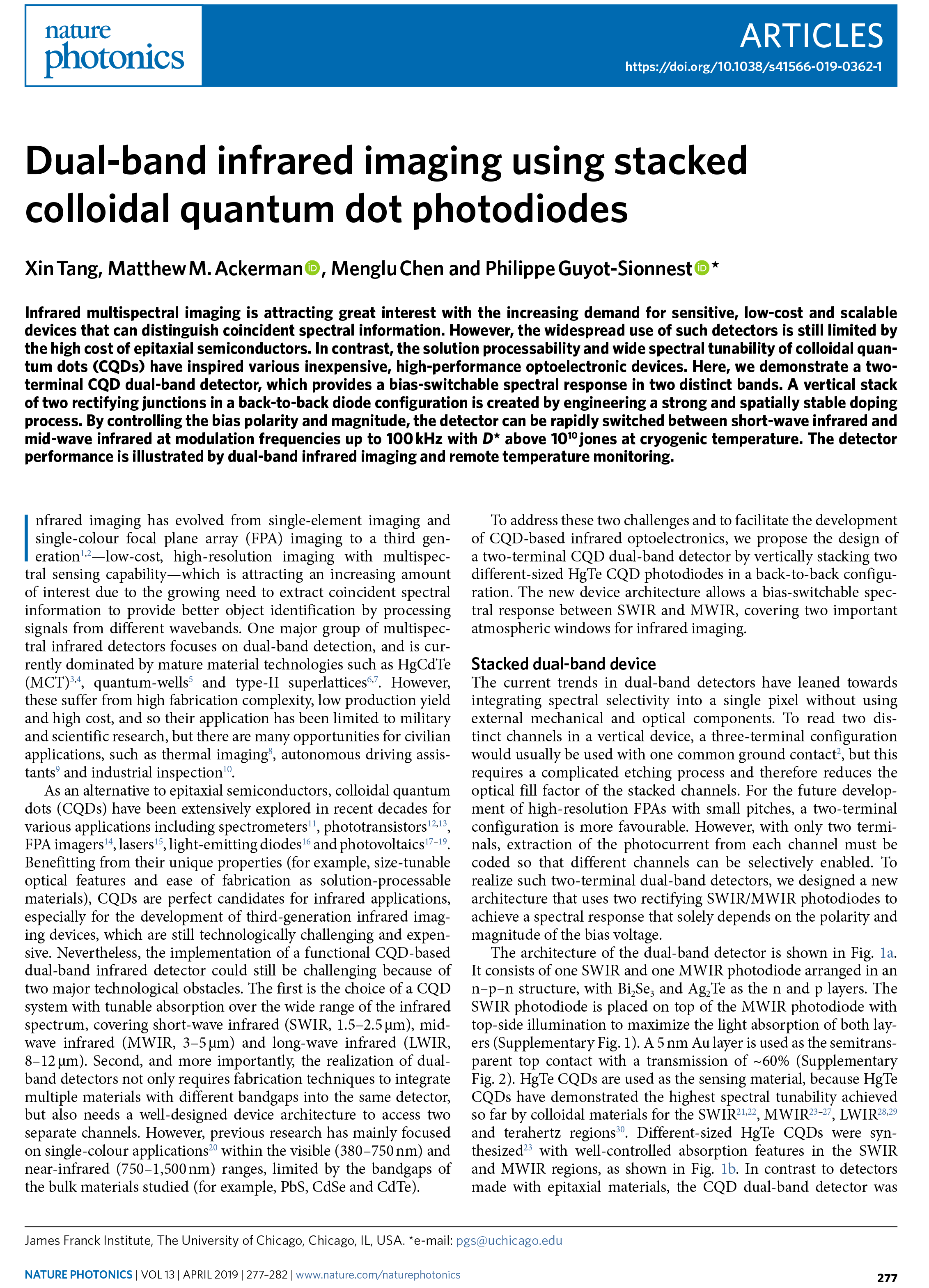 Dual-band infrared imaging using stacked colloidal quantum dot photodiodes
